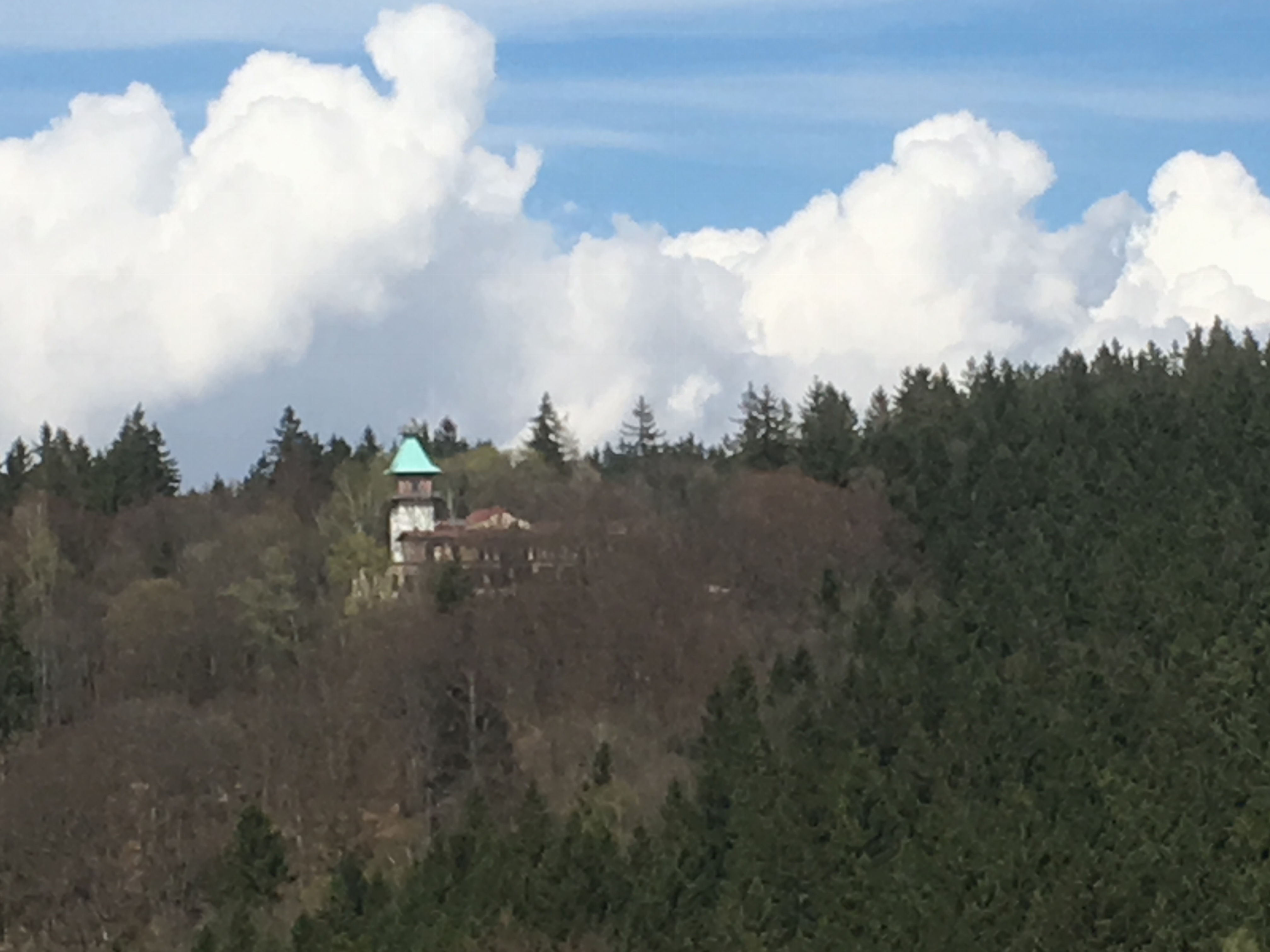 Das Wetter blieb weiterhin sehr schön und so fuhren wir zurück nach Marienbad in den Park Bohemianium, wo böhmische Sehenswürdigkeiten maßstabsgetreu nachgebildet sind.Zu Mittag aßen wir ausgezeichnet im Restaurant Rübezahl Wildgulasch mit Semmeknödel und Pilzrahmpfanne mit Kartoffelknödel. Danach bestiegen wir einen historischen Turm mit 100 Stufen und genossen die Aussicht über Marienbad. Gerade rechtzeitig waren wir zurück am Auto als ein heftiger Graupelschauer einsetzte.