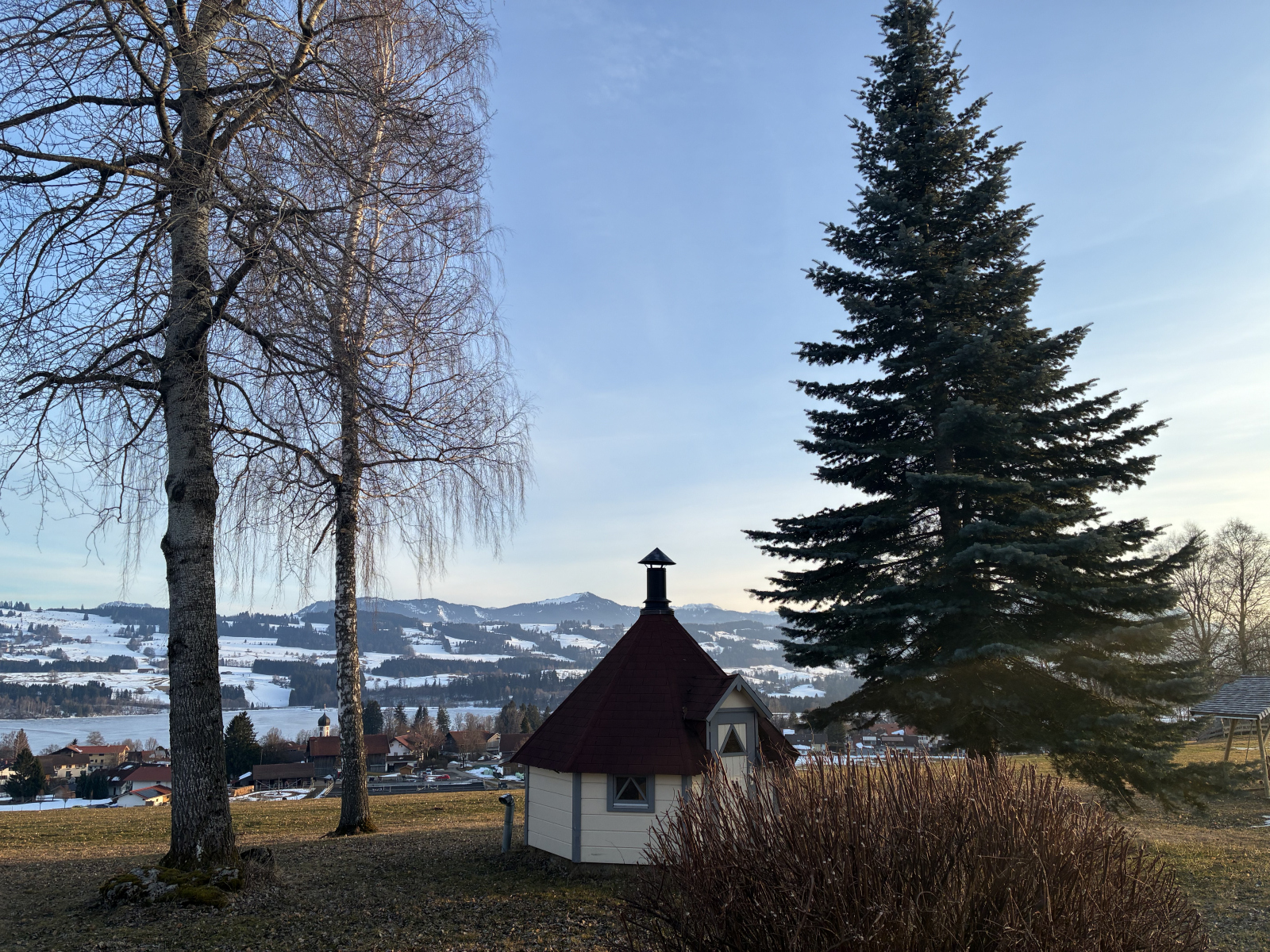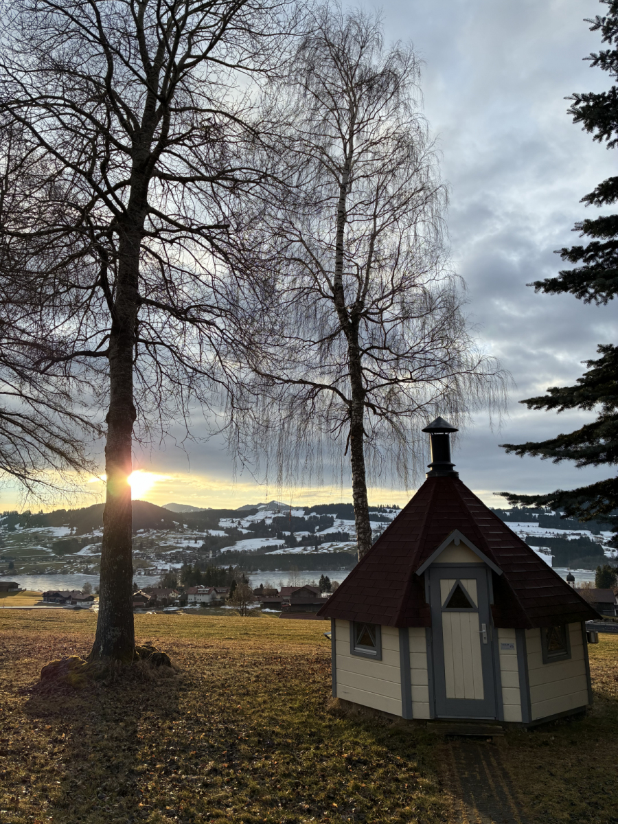Wir kamen bei schönen Wetter am Nachmittag an und genossen den Blick in die Allgäuer Alpen.